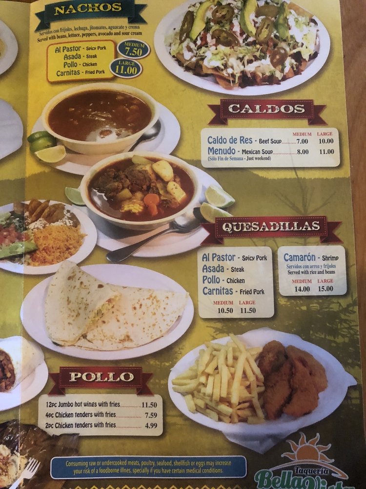 Introducing the menu at Bella Vista, a hidden gem in Conyers, GA specializing in authentic Mexican tacos. This butcher-taco joint offers a range of utilities, from delivery to catering, making it a versatile dining option. Customers rave about the generous portion sizes, flavorful meats, and friendly service. The extensive menu includes options like chorizo, carne asada, fish, spicy pork, and even beef tongue tacos. The bustling atmosphere, with a market in the front and taqueria in the back, adds to the authentic experience. Don't miss out on their mega tacos, massive in size and affordable in price. Whether you're dining in or taking out, Bella Vista promises a delicious and satisfying meal every time. It's a must-visit spot for Mexican food enthusiasts in the area.